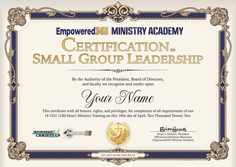 Become a Certified Small Group Leader — This certification program builds off our Foundations certificate to lead others in their walk with Jesus using a small group format. Building off their discipleship training students will continue to personally grow, while discipling someone, as they also prepare to lead others through the content which has been formatted to make it easier to use in small groups. Several courses have books available, as well as multi-week semester formats to choose from, making it easier to adapt into topical small group studies.
